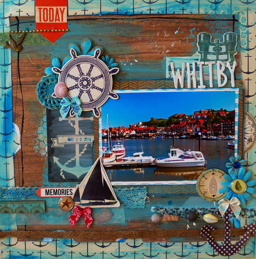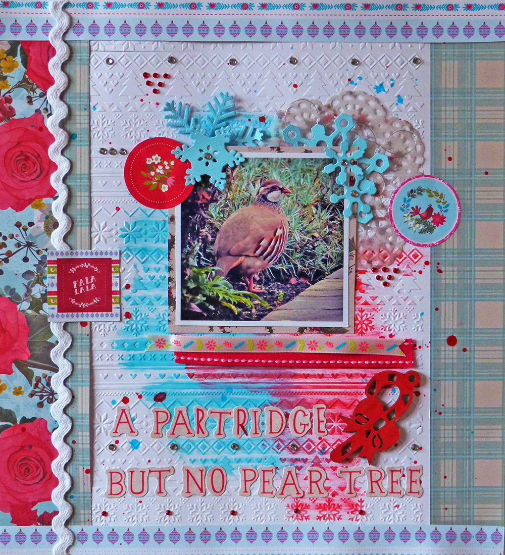 A close up of the title, stamped using the Traditional Alpha stamp set from docrafts. I lined the letters up on the layout before pressing the clear stamp block onto them so they were in perfect alignment with the curve of the circle.